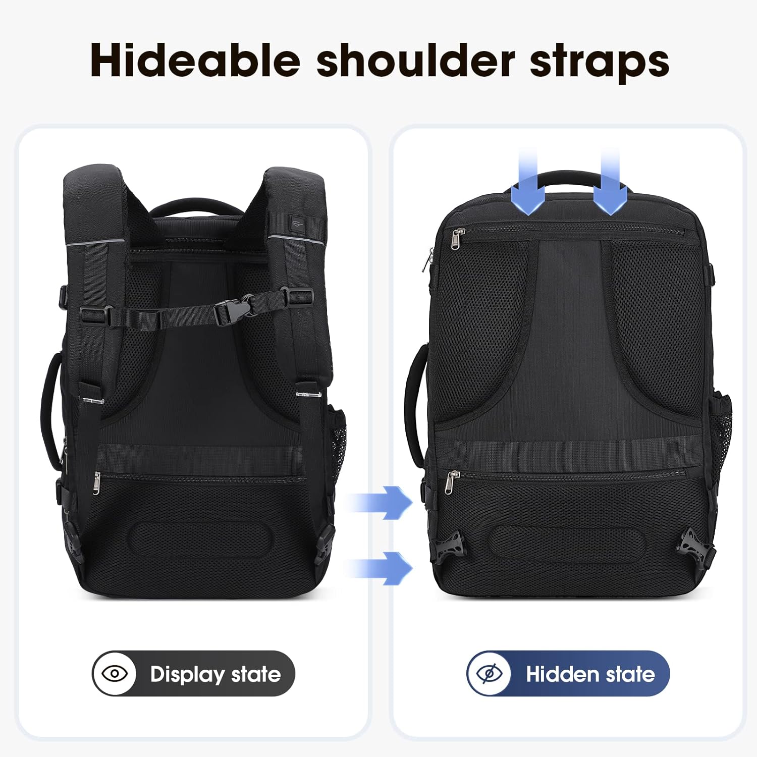 【With 2 Storage Bags and Wash Bags】: The carry-on backpack comes with 2 extra storage pockets, perfect for organizing your clothes when packing for a trip. The full mesh design makes items clearly visible and easier to find them. The travel backpack also comes with a toiletry bag for storing toiletries