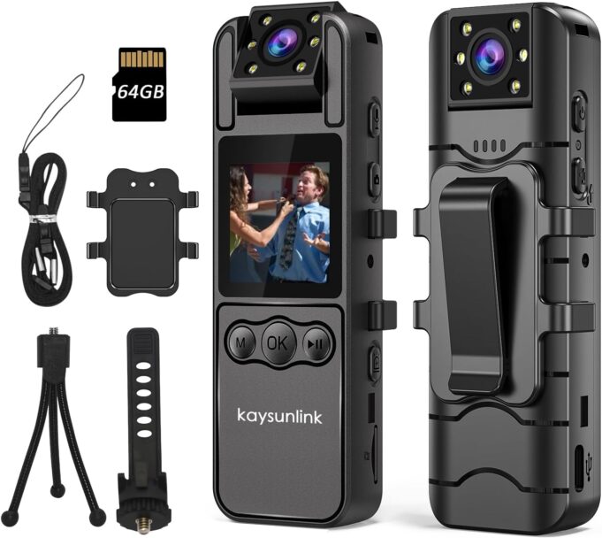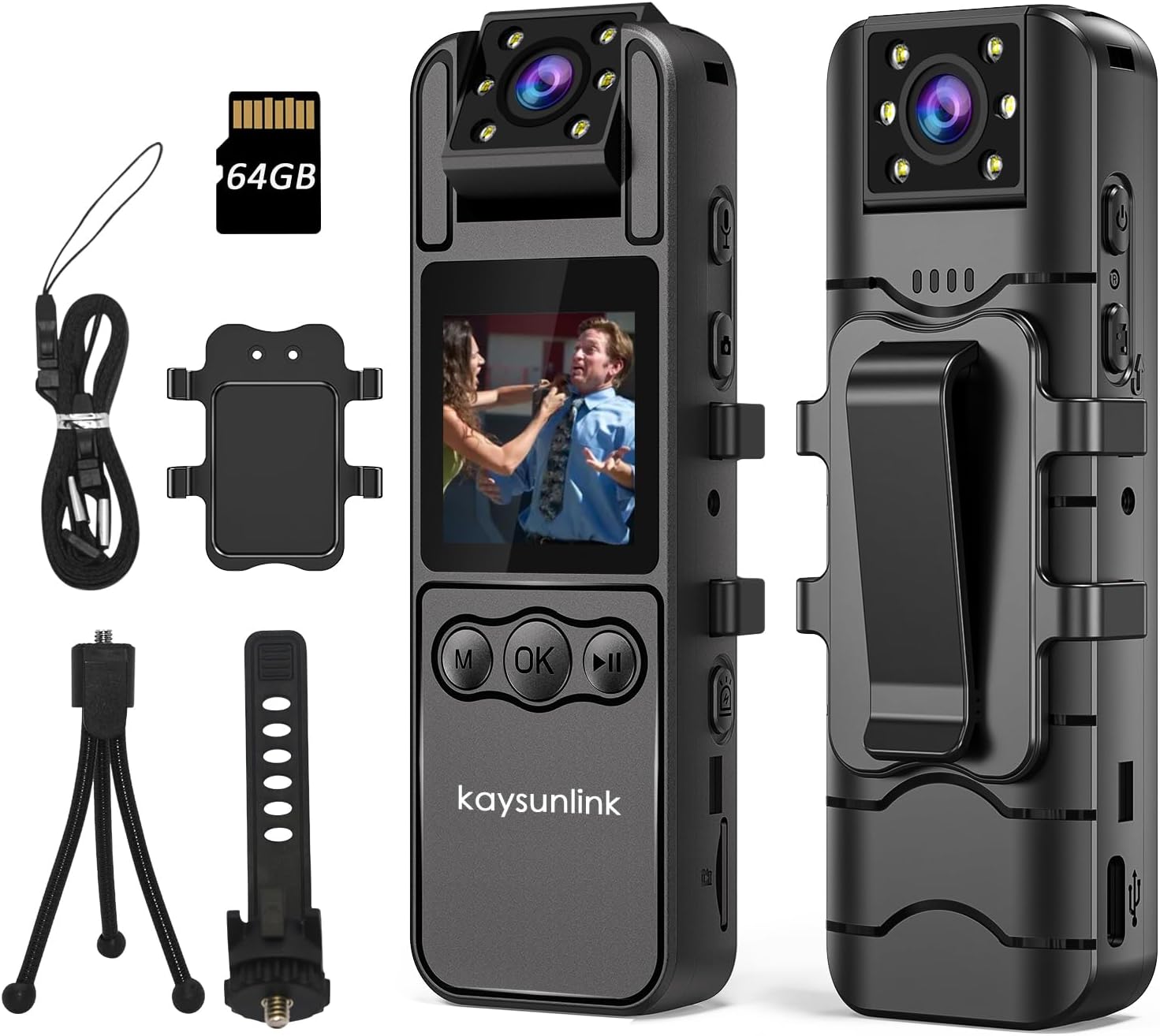 【Multifunctional Application】Kaysunlink Mini Body Camera is lightweight & compact,It can be used almost anywhere, Climbing, skiing, cycling, hiking, surfing. It’s portable that can either be clipped on your backpack or put in your pocket. Perfect for Hiking, Driving Record, Meeting Record,Outdoor sports.