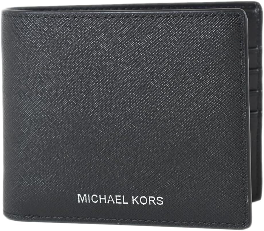 Men’s bifold wallet with Saffiano Hard Leather, Two full length bill compartments along the upper edge.