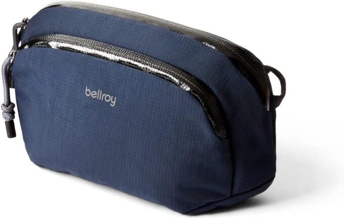Measures 125mm x 170mm x 50mm / 4.9 inches x 6.7 inches x 2.0 inches; made from durable, water-resistant recycled fabric, with water-resistant coated zippers