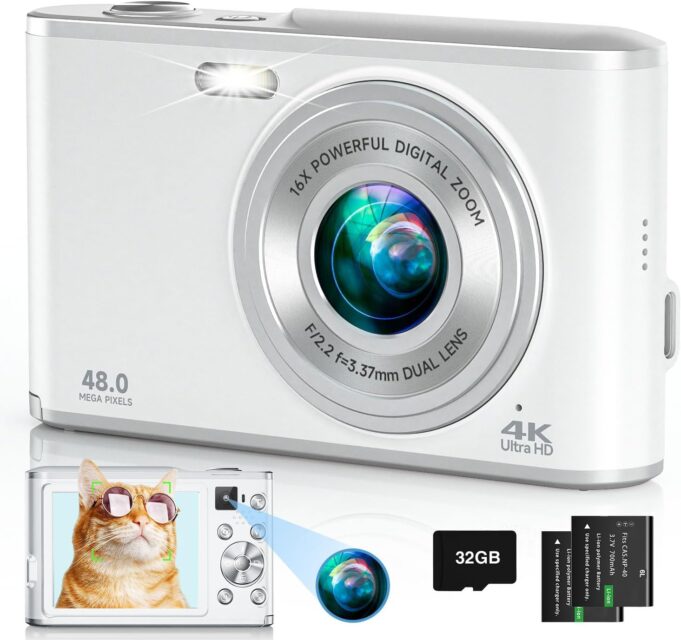 ☎️【𝗧𝗿𝘂𝘀𝘁𝘄𝗼𝗿𝘁𝗵𝘆 𝗪𝗮𝗿𝗿𝗮𝗻𝘁𝘆 & 𝗣𝗮𝗰𝗸𝗮𝗴𝗲 𝗟𝗶𝘀𝘁】We provide a one-year satisfaction warranty, along with a no-hassle replacement policy, any problem or question with the camera, please get touch with us. Package list: 4K Digital Camera, 32GB SD Card, Two Rechargeable Batteries, Portable Lanyard, Type C Cable, Charger Adapter and Carry Bag.