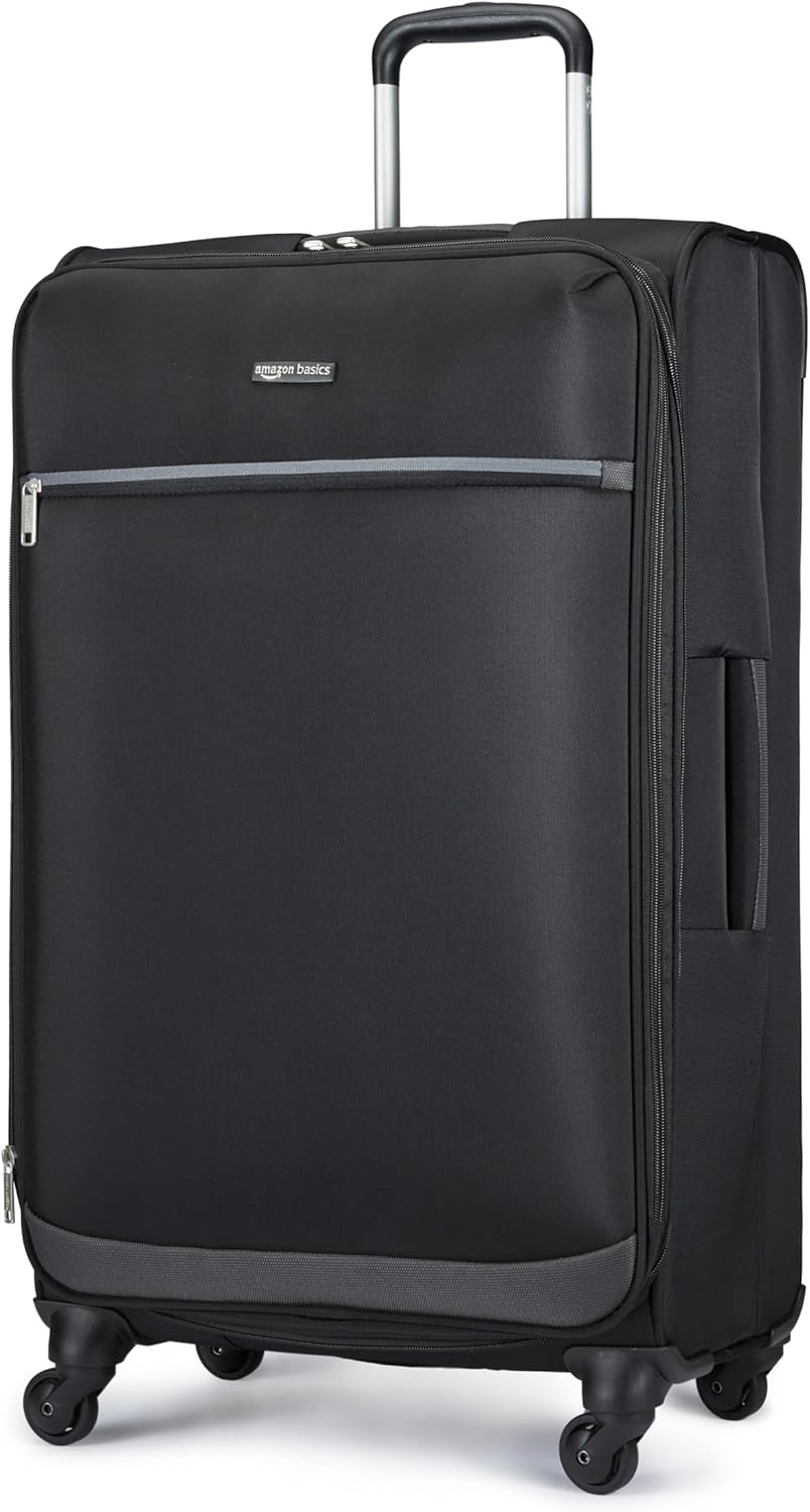This large suitcase offers an impressive 77-liter interior capacity, making it an excellent choice for those who need big suitcases for extended trips. With its 4 spinner wheels, this luggage provides smooth maneuverability through airports and crowded spaces. The soft-sided design of this suitcase provides flexibility, allowing it to fit easily into various storage compartments compared to rigid hardside options. This lightweight luggage option, weighing only 7.87 lbs., allows you to maximize your packing potential without extra bulk. The 62 linear-inch luggage measurement overall, including wheels, measures 17.5 x 12.9 x 30.9 inches, making it suited for checked baggage luggage requirements.