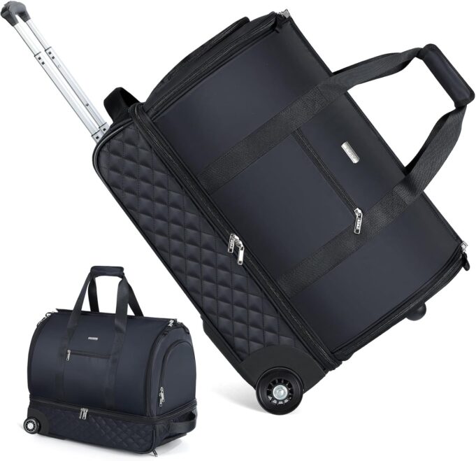 【Water-Resistant & Durable Quality Material】The garment duffel bag is made of high-quality waterproof & scratch-resistant Oxford fabric, with stronger carrying capacity and durability. Equipped with reinforced zippers, which are smoother to use and will not break. Telescopic handle are designed with multi-steps adjustment based on ergonomics to meet the needs of people of different heights