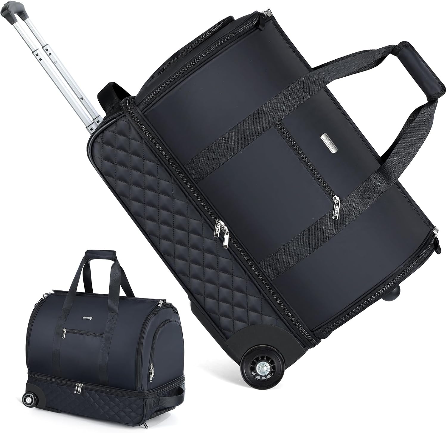 【Adjustable Trolley for Various Occasions】The trolley of the rolling garment bag is retractable to meet your needs in different scenarios. When you stay in a hotel or hostel, you can open it as a Duffel Hanging Clothes Bag; when you go on a short trip or have less items, you can use it as a travel luggage bag; when you go on a long trip or When you have a lot of items, you can use it as a trolley suit bag