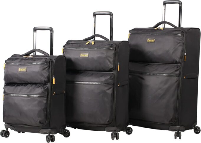 Lucas delivers a deluxe travel experience with the Ultra Lightweight collection. The aircraft grade aluminum handles are extra lightweight while maintaining a high standard for shock absorption and increased durability and strength. Its 4-directional spinner wheels are ultra light weight and made from 100% virgin PU material to withstand long term wear. The concise design and high quality of the luggage will keep you styling on the go.