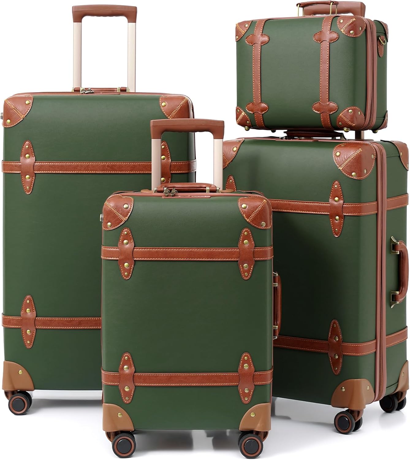 Vintage Luggage Set: Handmade with careful attention to detail. The rivets on the corners not only enhance the luggage’s texture but also add a touch of retro beauty and metallic charm. This perfect combination of handwork and retro style creates a unique and fashionable look.