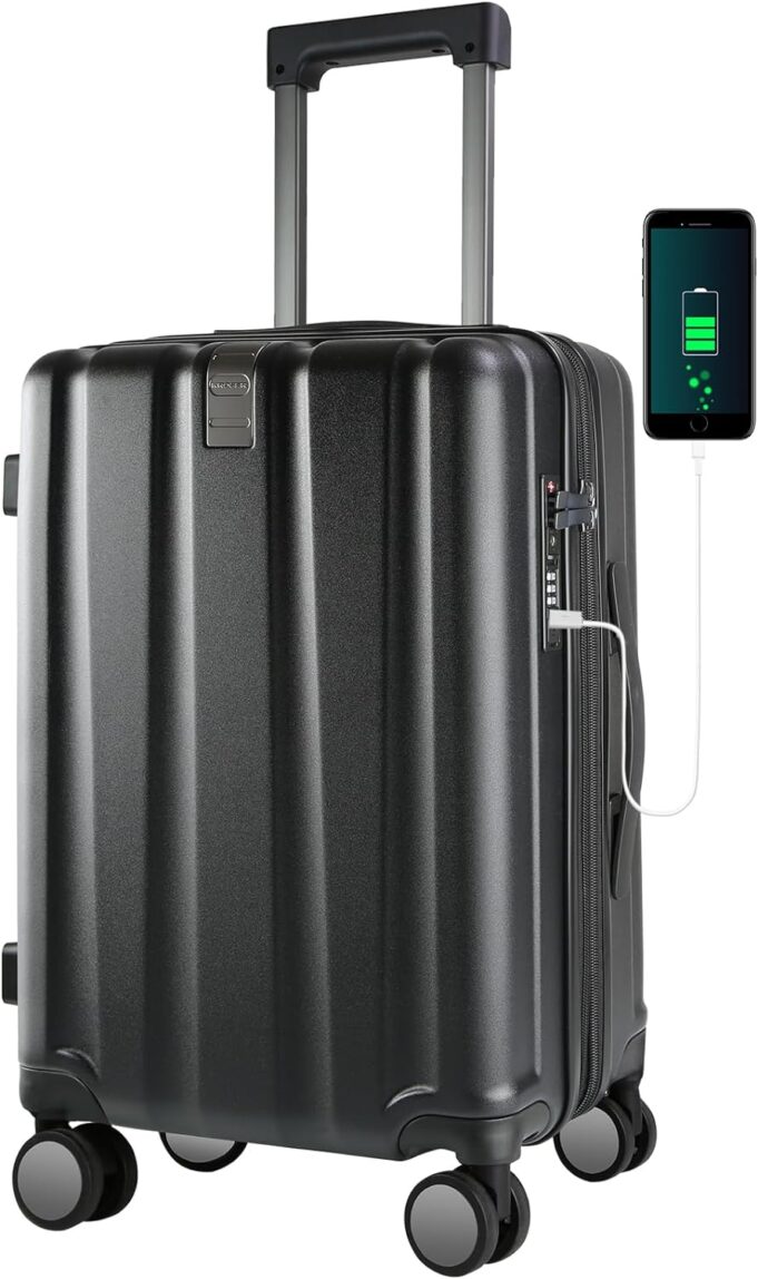 TSA-approved combination lock is safe and convenient. Convenient for airport staff to check and prevent the loss of items during the journey. USB Charging port is Good choice for travelling. (Power bank is not included.)