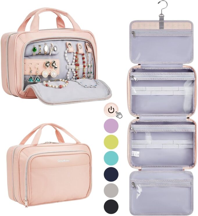 Jewelry Section – Features a separate front pocket designed for storing your accessories, in addition to the four compartments for your toiletries, allowing for easy organization and access