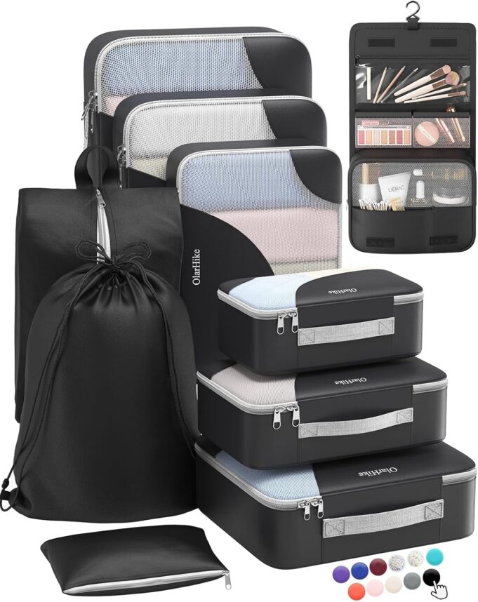 A Place For All Your Travel Essentials: 6 different-sized cubes, 1x toiletry bag, 1x laundry bag, 1x shoe bag, and 1x accessory bag provide ample space for all your travel essentials like jackets, shirts, shoes, toiletries, and more.