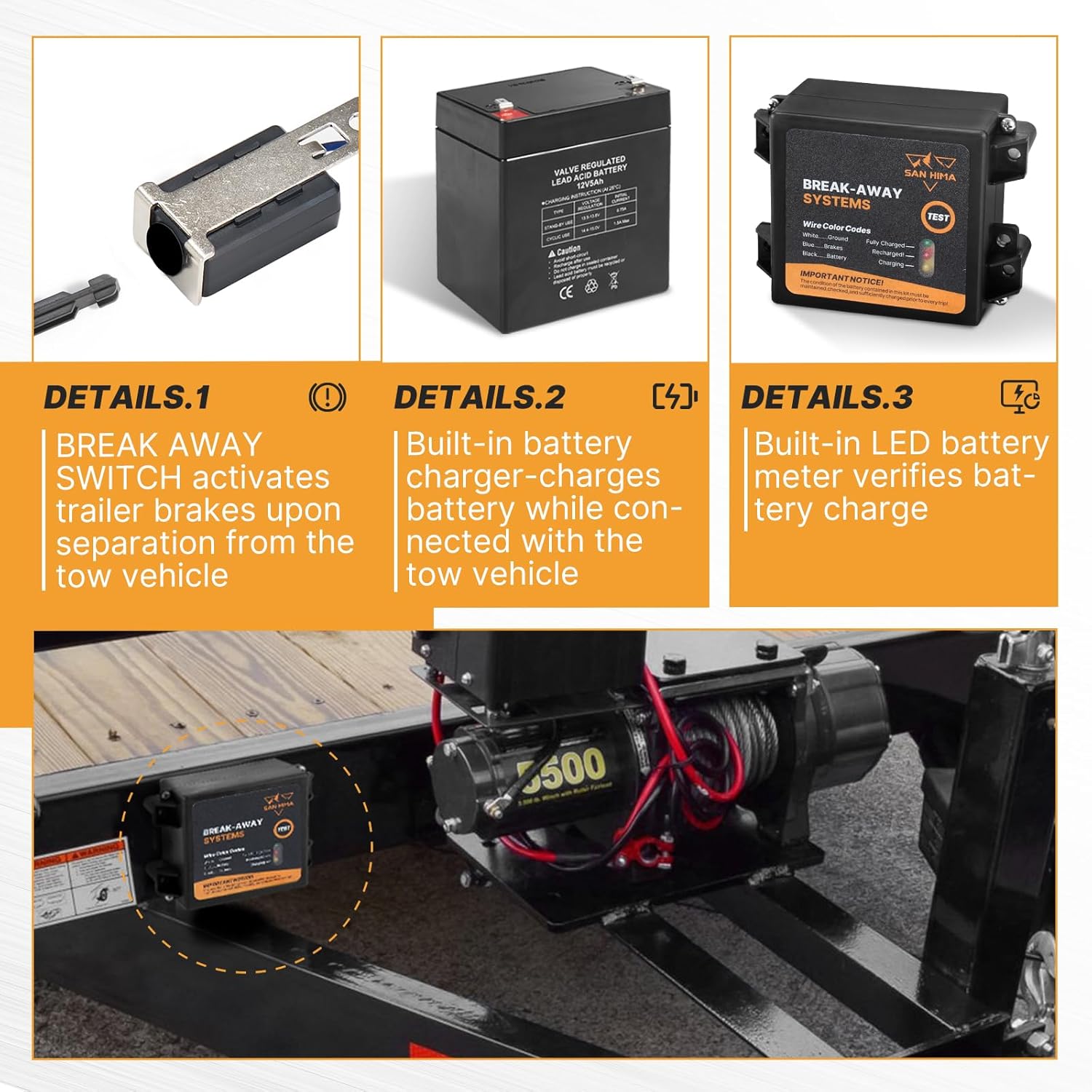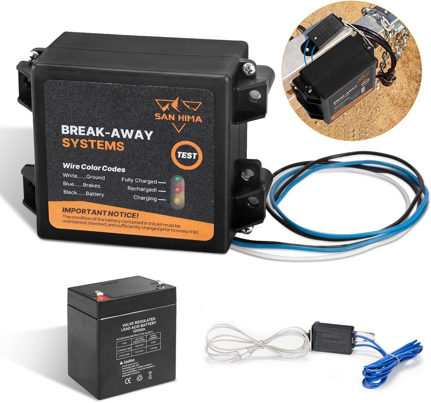 Reliable Power: The brakes breakaway kit has an easy to operate button to indicate the level of charge with LED indicator to ensure reliable charging.