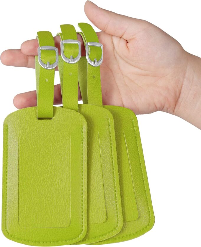 LUGGAGE TAGS MATERIAL: High Quality Premium Soft Leather Luggage Tags, No Odor, Eco-Friendly. Delicate Stitching Makes the Label Wear and Long-lasting. The Buckle is Made of Metal. Easy to secure your travel suitcase tag to your luggage, Can Make it Easier to Attach the Tags to Big Travel Bag